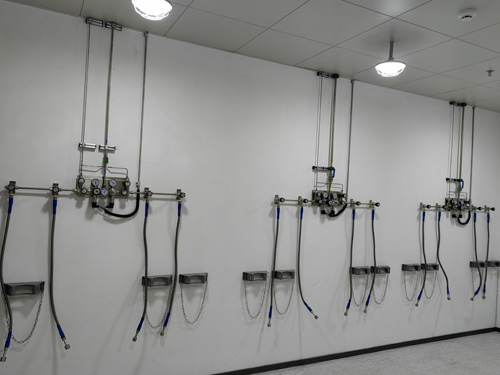 2.4N氦氣負責人線所按照OD3/8”(6.35mm)的管線,0.5Mpa阻力下作量達到8M3/分鐘,截然擁有傳統用氣使用需求,支線所按照OD1/4”(6.35mm)的管線。用悍接三通接頭區分出支路來對設施完成供氧。